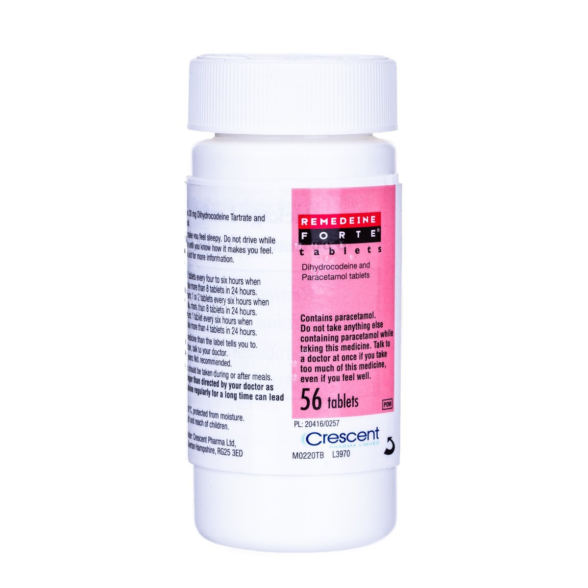 Remedeine Forte is a type of strong pain relief medication. It contains both paracetamol and dihydrocodeine. It may be prescribed for severe pain that has not settled with one type of pain relief alone.